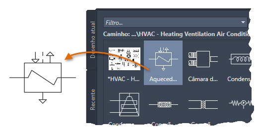 - Na paleta Blocos, guia Outros desenhos, selecione e coloque ou arraste e solte vários dos blocos.