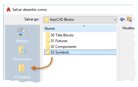 Dica: Quando você salvar o desenho, navegue até uma pasta, clique com o botão direito do mouse e crie várias pastas para organizar os desenhos do bloco. É possível arrastar um ou mais deles para a barra de Locais para facilitar o acesso no futuro.