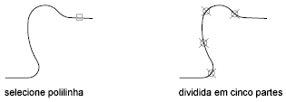 Posiciona blocos específicos em intervalos iguais ao longo do objeto selecionado. Os blocos serão inseridos no plano no qual o objeto selecionado foi originalmente criado. Se o bloco tiver atributos variáveis, estes atributos não serão incluídos.