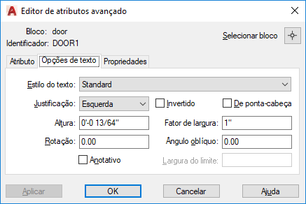 Configura as propriedades que definem a forma como o texto de um atributo é exibido no desenho. Altere a cor do texto do atributo na guia Propriedades.