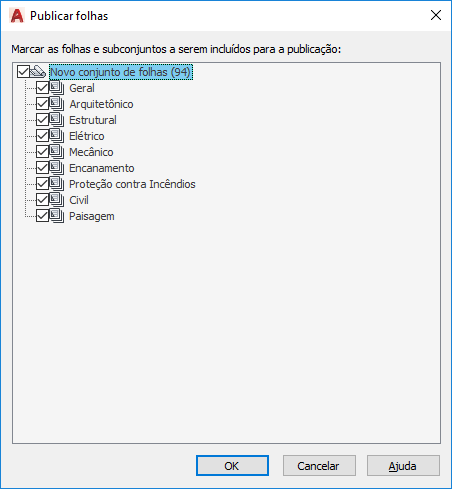 Quando uma folha é selecionada, ela é incluída para publicação.