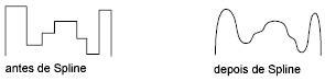 Utiliza os vértices da polilinha selecionada como pontos de controle ou molduras de uma curva aproximando-se de uma B-spline. Essa curva, chamada polilinha de ajuste à spline, passa através do primeiro e último pontos de controle a menos que a polilinha original seja fechada. A curva é atraída em direção aos outros pontos mas não passa necessariamente por eles. Quanto mais pontos de controle você especificar em um determinado ponto da moldura, maior atração eles exercerão sobre a curva. É possível gerar polilinhas de ajuste à spline quadráticas e cúbicas.