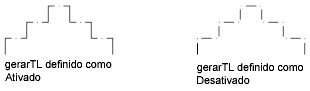 Gera o tipo de linha em um padrão contínuo através dos vértices da polilinha. Quando estiver desativada, essa opção irá gerar o tipo de linha que comece e termine com um traço em cada vértice. Ltype Gen não se aplica a polilinhas com segmentos afilados.