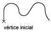 Marca o primeiro vértice da polilinha ao desenhar um X na tela. Se você especificou uma direção de tangente para esse vértice, uma seta também é traçada nessa direção.
