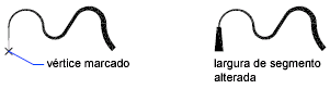 Altera as larguras inicial e final do segmento imediatamente seguinte ao vértice marcado.