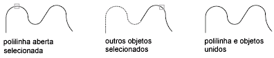 Une as polilinhas selecionadas estendendo ou aparando, quando possível. Caso contrário, une as polilinhas selecionadas adicionando um segmento de reta entre as extremidades mais próximas.
