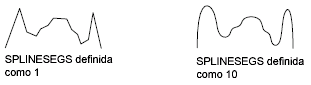 É possível examinar ou alterar a precisão ou a grossura da aproximação da spline com a variável de sistema SPLINESEGS. O valor padrão é 8. Se você definir o valor acima do padrão, um número maior de segmentos de linha será desenhado e o grau de precisão da aproximação à spline ideal será aumentado. Por outro lado, a spline gerada ocupará mais espaço no arquivo de desenho e sua criação será mais lenta.