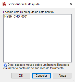 Quando o comando é adicionado a uma barra de ferramentas ou painel da faixa de opções, o conteúdo da dica de ferramenta ampliada é exibido se as dicas de ferramenta ampliadas estiverem ativadas e o cursor passar sobre o comando para o intervalo de tempo designado.