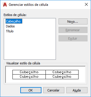 Lista todos os estilos de célula dentro do estilo atual de tabela. Os estilos de célula Título, Cabeçalho e Dados são sempre contidos em qualquer estilo de tabela.
