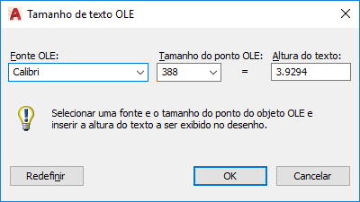 O objeto OLE é redimensionado automaticamente para acomodar o tamanho do texto.