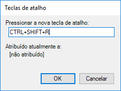 - Clique em OK para atribuir a combinação de teclas e feche a caixa de diálogo Teclas de atalho.