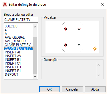 Quando você clicar em OK, esta definição de bloco é aberta no Editor de bloco. Quando você selecionar <Current Drawing>, o desenho a atual é aberto no Editor de Blocos.