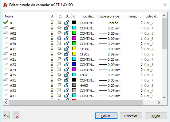 Exibe todas as camadas e as propriedades que foram salvas no estado de camada selecionado.