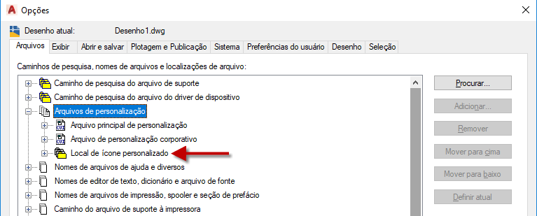 <unidade>:\Users\<perfil do usuário>\AppData\Autodesk\<versão do produto>\<número da versão>\<idioma>\Arquivos personalizados da versão anterior