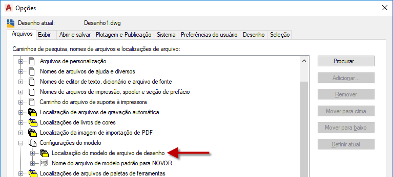 Os arquivos de modelo de desenho (DWT) são usados para criar novos desenhos. Os desenhos criados com um arquivo DWT contêm todos os estilos e objetos de desenho definidos no arquivo DWT. Os arquivos DWT personalizados da versão anterior são migrados para uma subpasta com o nome da versão para a qual eles foram migrados; a convenção de nomenclatura da subpasta é Modelos Nome do produto. A subpasta Modelos Nome do produto é criada na pasta definida pela configuração Localização do arquivo de modelo do desenho.