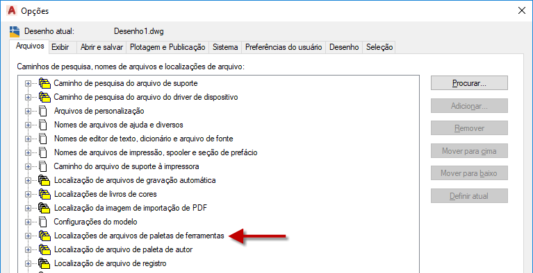 Os arquivos da paleta de ferramentas contêm ferramentas padrão e definidas pelo usuário. Os arquivos são armazenados nos locais especificados na configuração Localizações de arquivos de paletas de ferramentas.