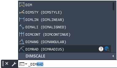 Se você começar a digitar o nome do comando ou variável de sistema na linha de comando, o recurso de preenchimento automático exibe as suas opções. Por exemplo, se você inserir cota, todos os comandos e as variáveis de sistema que começam com aquelas letras são listados.