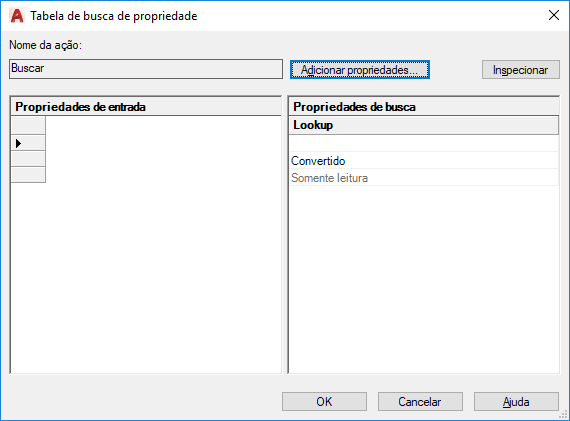 Exibe o valor personalizado atribuído às propriedades de entrada. Clique na base da coluna de pesquisa para tornar a propriedade de pesquisa como somente leitura ou para permitir a pesquisa reversa. Permitir a pesquisa reversa ativa uma lista suspensa associada com a alça de pesquisa que altera a referência de bloco para corresponder com os valores de propriedades de entrada na tabela.