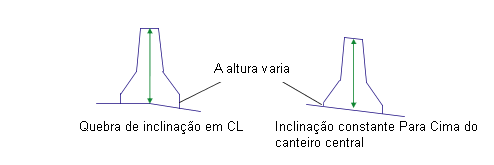 | Direção de inclinação do acostamento | Especifica se as inclinações de acostamento estão longe do coroamento ou em direção a este |