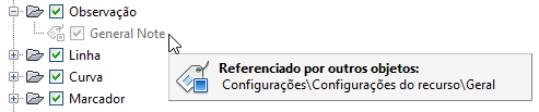 Neste exemplo, as configurações do recurso Geral fazem referência ao estilo Nota geral, por isso a caixa de seleção de Nota geral não pode ser desmarcada no momento.