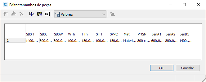 Dica: Você pode copiar e colar valores de outras famílias de peças usando a funcionalidade comum de copiar e colar do Microsoft® Windows (CTRL+C e CTRL+V). Abra outra peça no Gerador de peça, selecione o parâmetro de tamanho que deseja copiar e, a seguir, cole os valores selecionados no parâmetro desejado de sua peça. Você também pode criar uma lista de valores no Microsoft® Excel, selecionar a lista de valores que deseja adicionar e, a seguir, colar os valores no parâmetro desejado de sua peça.