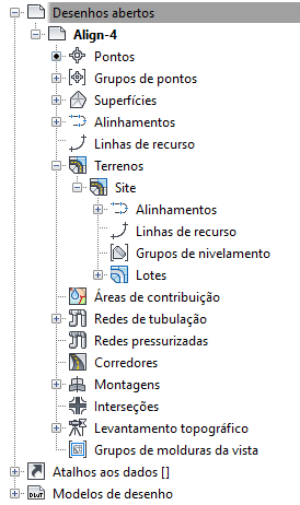 Nesta guia, todos os objetos em um desenho ou projeto são organizados em uma hierarquia.
