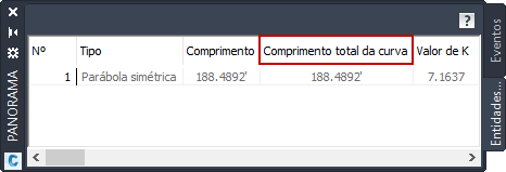 O valor de Comprimento total da curva mostra o comprimento total de curva vertical, enquanto a propriedade Comprimento mostra o comprimento da parte resolvida da geometria da curva, como quando as tangentes são anexadas ao longo das curvas.