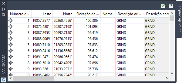Utilize a janela Panorámica para exibir os dados em uma grade.