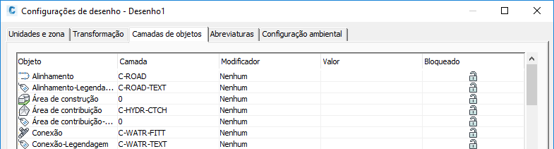 Você pode especificar as camadas base padrão para os objetos na guia Camadas do objeto da caixa de diálogo Configurações do desenho.