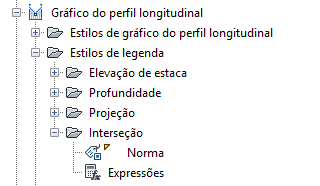 Objetos de interseção usam estilos de legenda de interseção de gráficos de perfil longitudinal.