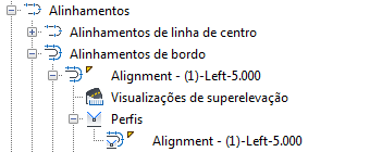 Os alinhamentos de bordo são adicionados à coleção Alinhamentos de bordo em Prospector. Os perfis de bordo são criados na coleção Perfis dentro das coleções nomeadas dos alinhamentos de bordo.