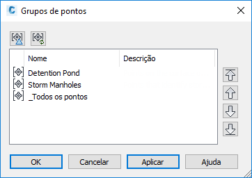 A ordem de exibição do grupo de pontos para um desenho determina a ordem na qual os grupos de pontos são desenhados quando um desenho é aberto ou gráficos são regeneradas. O primeiro (maior) grupo de pontos na lista é desenhado por último.