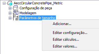 Para editar tamanhos de peças dentro da família de peças de tubulação de concreto