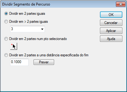 Para exibir o diálogo Dividir Segmento de Percurso, clique em Dividir segmento
