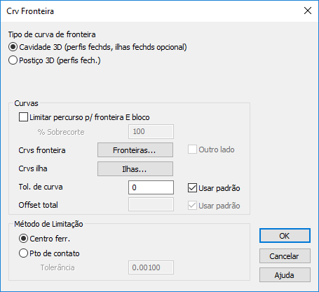 Para exibir o diálogo Crv Fronteira, clique no botão Opções Curva na ficha Bloco.