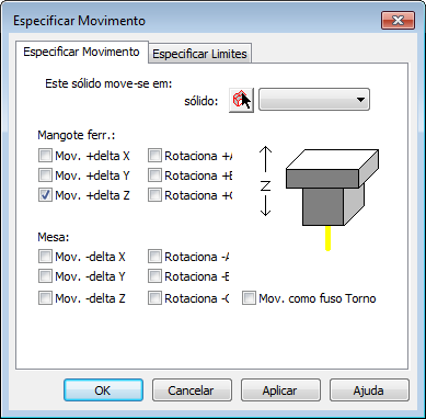Considerando que esse sólido se move no eixo Z, a opção Mov. +delta Z é selecionada na seção Mangote ferr.