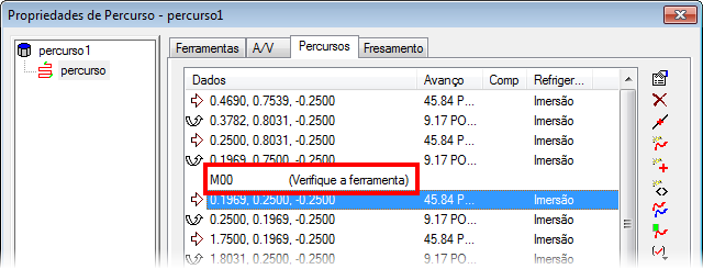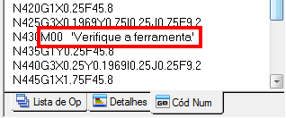 Por exemplo, você pode inserir uma parada condicional M00 num ponto em particular para verificar a ferramenta.