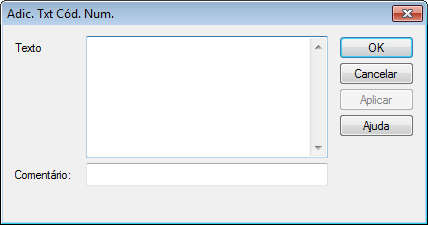 Para exibir o diálogo Adic. Txt Cód. Num., clique em Adic. Txt Cód. Num.