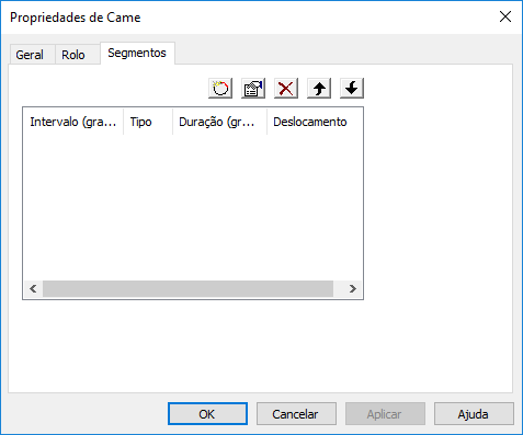 A guia Segmentos define os segmentos de came e seus parâmetros específicos. Os arcos de segmento são listados em sequência anti-horária.