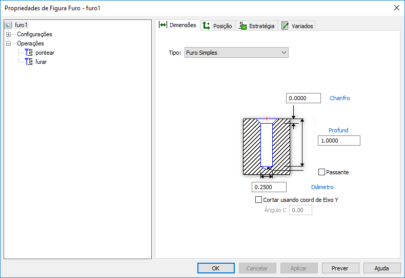 Passante — Selecione essa opção para aumentar o comprimento do furo por 10% do diâmetro do furo para considerar a ponta da broca e evitar rebarba.