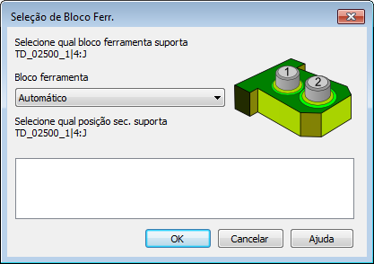 Utilize o diálogo Seleção de Bloco Ferr. para especificar qual bloco ferramenta suporta uma ferramenta.