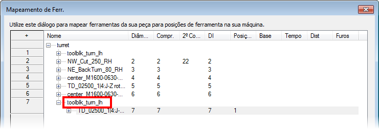 - No diálogo Mapeamento de Ferr, selecione uma ferramenta e clique em Selecionar Bloco para exibir o diálogo Seleção de Bloco Ferr.