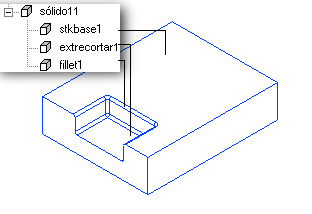 Sob cada sólido se encontra uma sequência de funções de design que foram utilizadas para criar o sólido.