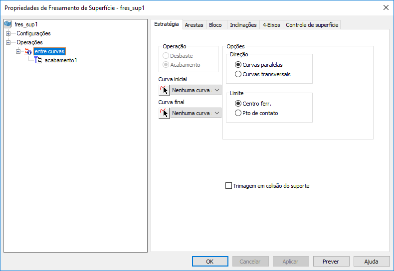 Selecione a Curva inicial e a Curva final entre as quais usinar.