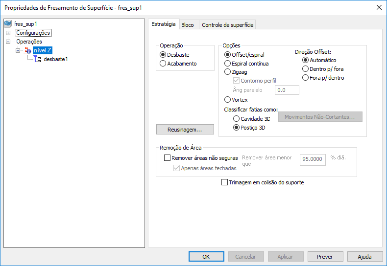 Reusinagem — Clique nesse botão para exibir o diálogo Opções de Reusinagem Desbaste Nível Z.