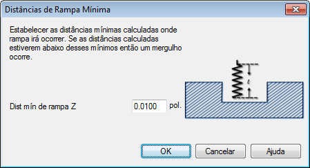 Você pode utilizar o diálogo Distância de Rampa Mínima para especificar a distância mínima de rampa Z, abaixo da qual mergulho ocorre.
