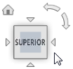 Quando você seleciona uma vista de face única e movimenta o cursor próximo ao cubo, ícones de controle são exibidos: