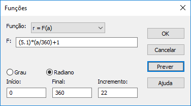 Na lista Função, selecione r = F(a).