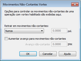 Utilize o diálogo Movimentos Não-Cortantes Vortex para especificar se ocorre retração e aumento do avanço em movimentos não-cortantes.