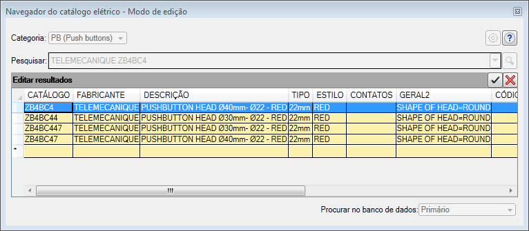 Edite o banco de dados de catálogos, incluindo informações básicas de catálogos e listas de pinos associados, propriedades de terminal e listas de condutor de cabo.